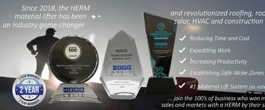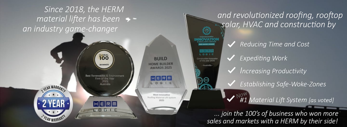 By 2018, John returned to design and manufacturing, creating the first HERM Material Lifter and Conveyor. What began as a single innovation has grown into a multi‑award‑winning rooftop logistics platform that transforms productivity, safety, and cost efficiency across roofing, solar, HVAC, and building services. Through continuous engineering—from Gen1 (Mk1) to the latest Gen3 (Mk3) - HERM Ultra Lite series—we’ve delivered up to 45% in labor cost savings and up to 90% productivity gains for contractors worldwide.